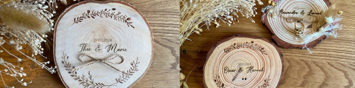 Trauringhalter mit Gravur und Trockenblumen